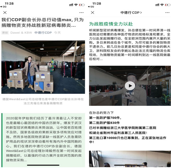 中德联合培养本科生项目2006级校友孙琦,现任德国West & East公司总经理也是中德行CDP副会长,毅然在第一时间发起捐赠组织,以最强的行动力展开全欧洲范围的救援物资采购,为筹措物资不遗余力。