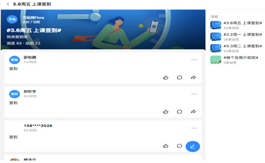 课前学生通过钉钉平台的“学习圈”功能签到。