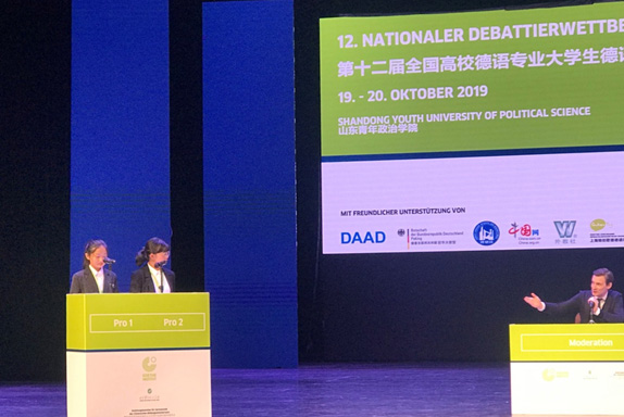 10月19日至20日,第十二届全国高校德语专业大学生德语辩论赛在山东青年政治学院举行。今年共有48所设有德语专业的高校组队参赛,包括北京大学、北京外国语大学、同济大学、复旦大学、南京大学等等,比赛高手如云、精彩纷呈。全国高校德语专业大学生辩论赛由教育部高等学校外语专业教学指导委员会德语分委员会和北京歌德学院联合主办,是全国高校德语教育界水平最高、最具权威的、唯一的国家级辩论赛,受到我国教育部和德国驻华大使馆德意志学术交流中心的高度重视和大力支持。该赛事对于中国各大高校德语专业的重要性日渐体现,参赛选手的能力也逐年增长,竞争愈加激烈。