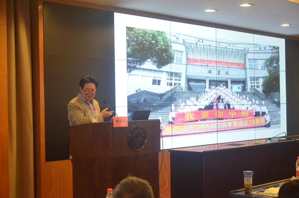 然后,邵有学教授所作的《借助语言文化的传播开展文化全球化》报告也引起在座人员的极大兴趣。他强调对外传播、语言先行,语言作为文化的载体,传播一种语言就意味着传播一种文化。邵教授提出,凭借遍布世界各地会说汉语的华人华侨可以向全球进行中华文化传播,另外借助华文教育、“汉语热”和“中国文化周”等活动可以很好地讲好中国、浙江故事。作为传承中华民族文化基因的汉语,推动汉语文化传播不仅有利于促进中外人文交流,同时也能为推动世界多元化语言文化发展、共同构建人类命运共同体,做出积极贡献。但是,邵教授也指出了汉字习得困难成为中国语言和文化“走出去”的障碍和挑战,因此这是一个长期的、逐步积累的发展过程。
