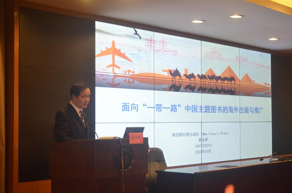 最后,黄永军社长给我们介绍了《面向“一带一路”中国主题图书海外出版与推广》。他用丰富的图片向我们展示了中国主题图书在“一带一路”国家的翻译和出版历程与现状,以及在多国的宣传推广实践与经验,其中既包括介绍中国共产党成功之道等“红书”,也包括介绍习近平治国理政思想的图书,还包括助力全球抗疫的抗疫图书。这些主题图书的出版与推广,不仅是在向全世界讲述“中国故事”,更是在向全世界传播“中国梦”,从而促进中国文化走出去以及软实力的提升。