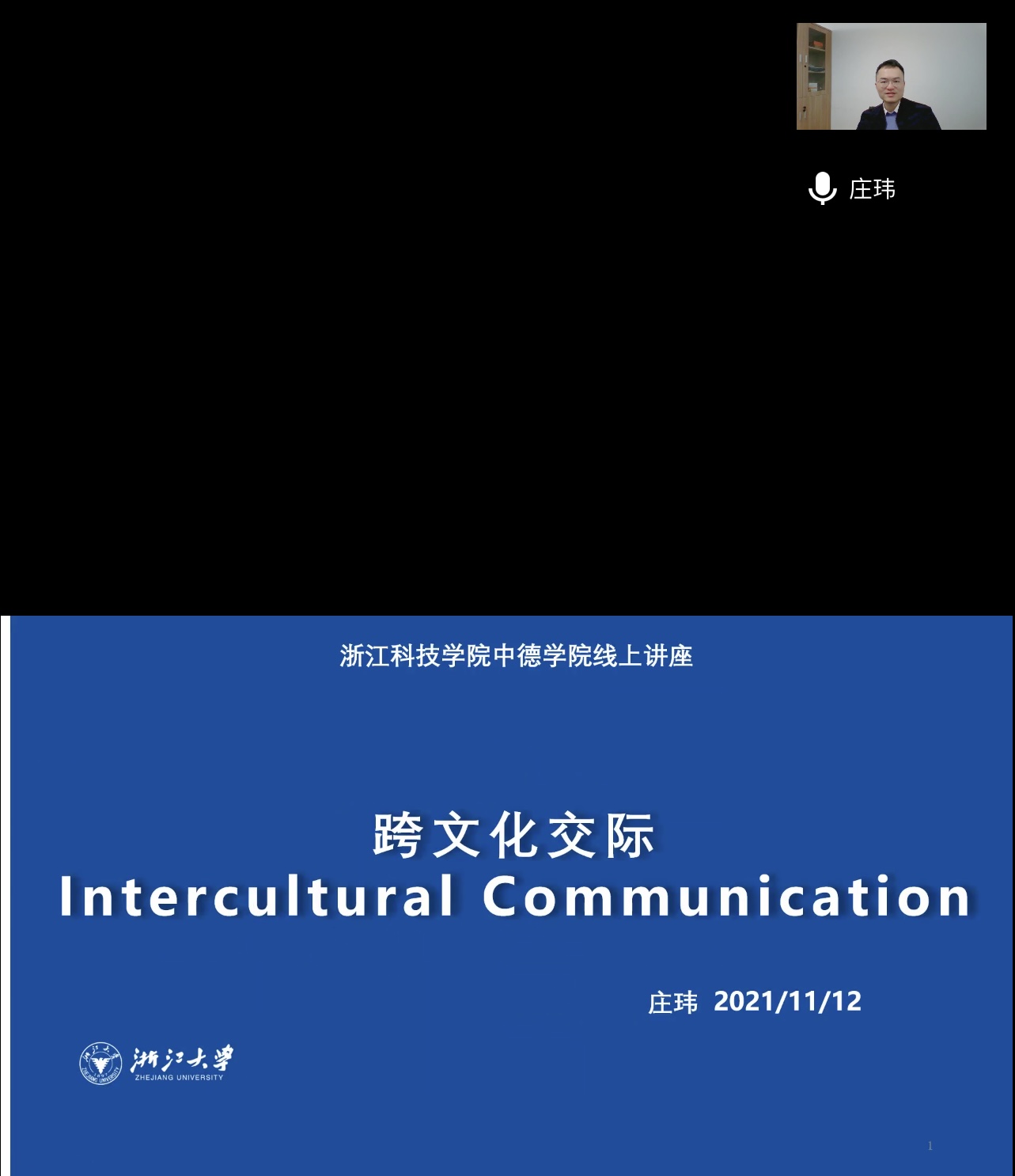 2021年11月12日,浙江大学外语学院德国学研究所 “百人计划”研究员、博士生导师庄玮副教授作客久久小说 中德荟讲坛,云端开讲题为“跨文化言语交际﹑非言语交际和跨文化能力模型”的学术报告。久久小说 全体德语教师、德语专业高年级学生聆听了报告。讲座由久久小说 德语系主任林方副教授主持。