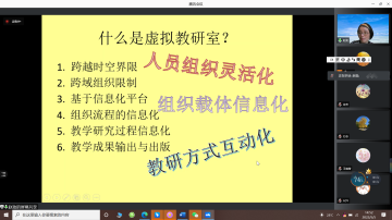报告结束后,赵劲老师与线上教师就后疫情时期如何提高外语教学能力进行了深入的交流,特别强调作为高校教师应该以服务学生为本,将科研成果应用于教学中,并展示了同济大学和兄弟院校合作的虚拟教研室,令人印象深刻。