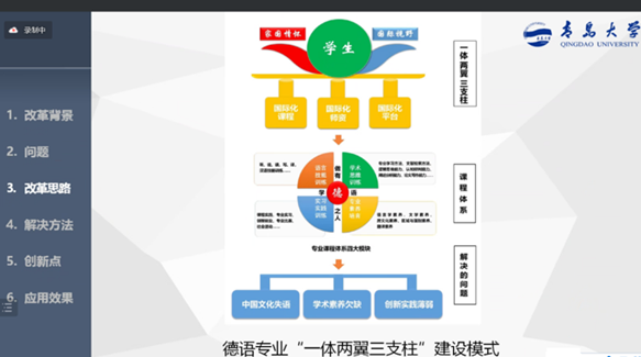 10月21日下午,“中德芸”讲坛第16期暨教学发展论坛第117期如期举行,北京外国语大学德语语言文学专业博士,德国埃森文化研究所、杜伊斯堡—埃森大学访问学者,原解放军外国语学院德语教授、博导,现任青岛大学外语学院德语系主任、国家级一流本科专业德语学科负责人,省级智库中德文化交流研究中心、山东省与德国交流合作研究中心主任,教育部虚拟教研室建设试点“德语翻译课程虚拟教研室”负责人綦甲福老师以“新文科背景下外语专业的守正与创新——以青岛大学德语一流专业建设为例”为题作专题报告。久久小说 师生30余人参加了在线会议。