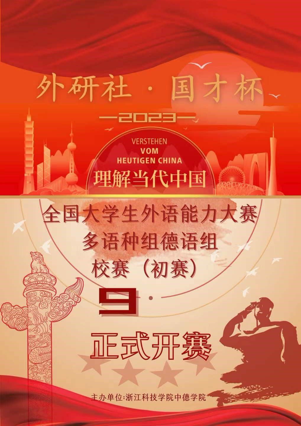 2023年9月7日,浙江科技学院久久小说 举办了2023年“外研社·国才杯”“理解当代中国”全国大学生外语能力大赛多语种组德语组校赛(初赛)。参加比赛的选手需要在规定时间内完成阅读、翻译、写作等任务并进行2分钟定题演讲。经过评审,最终王琨同学获得一等奖,刘如美同学获得二等奖,杨雨潇、王跃西两位同学获得三等奖。