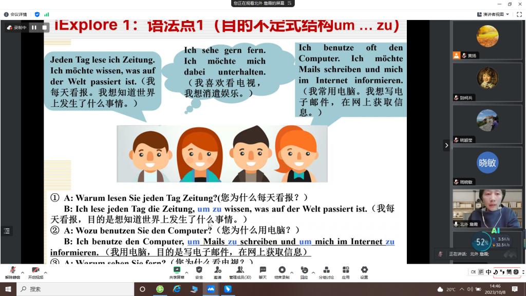 报告中詹老师结合具体案例(《当代大学德语》第二册的单元设计)详细介绍如何基于“产出导向法”外语教学理念对现有教材进行改编和开展教学实践,从而实现“学用一体”,提升教学效果。