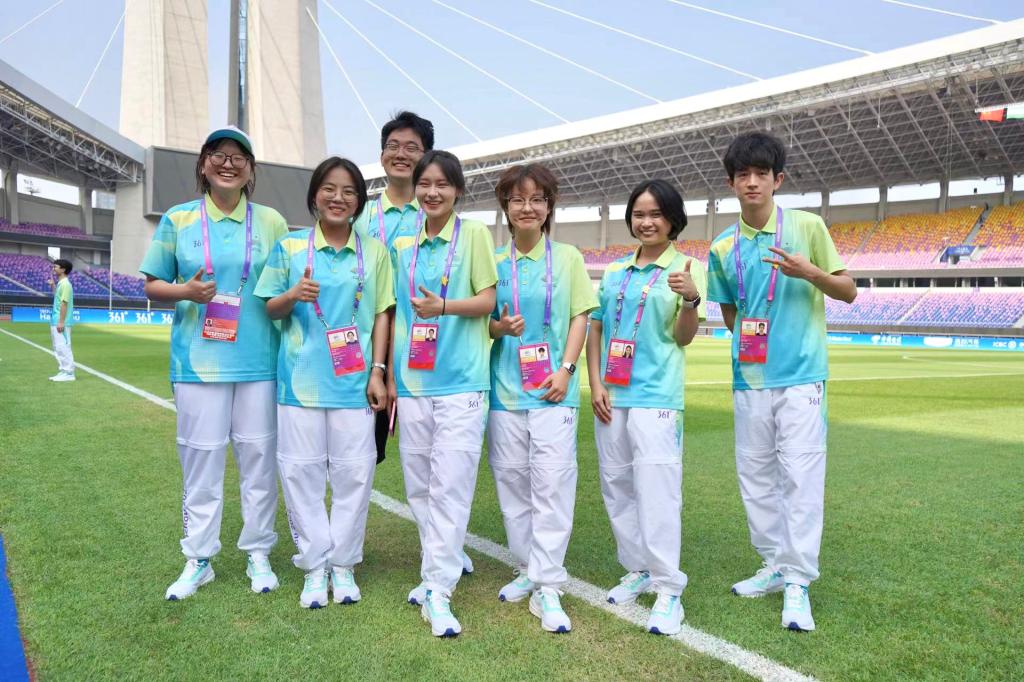 到亚运赛场,你们的青春正在各个领域闪光!谢谢你,中德小青荷,你们为学院争光,为亚运护航!