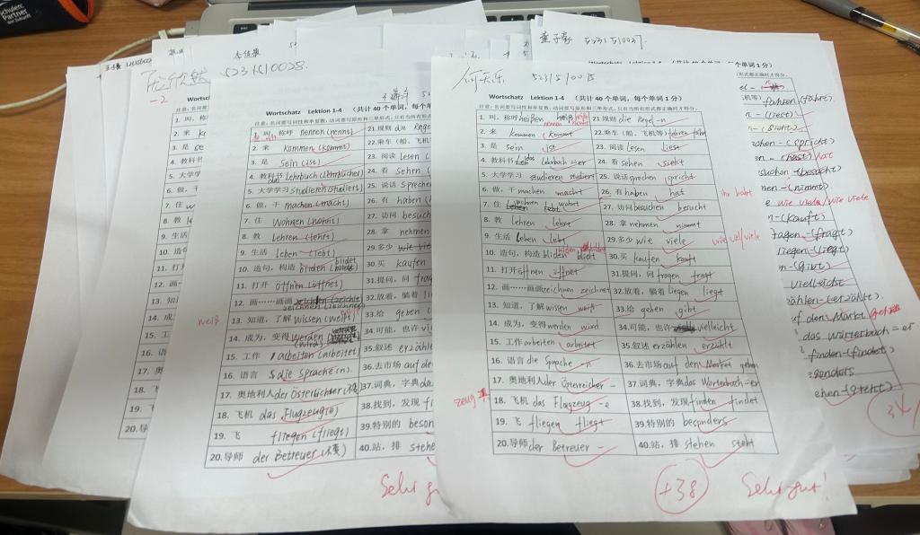 学院旨在通过举办词汇竞赛,以赛激趣,以赛促学,激发德语学习兴趣,增加德语词汇量,提高词汇运用能力。同时,通过词汇竞赛,也有助于教师动态掌握真实学情,及时进行有重点、有针对地培优扶弱。测试的词汇以教材内容为基础,需要学生灵活变化和运用,即不仅考察学生词汇量大小,同时也要求学生掌握词形、词义变化、词汇搭配等。