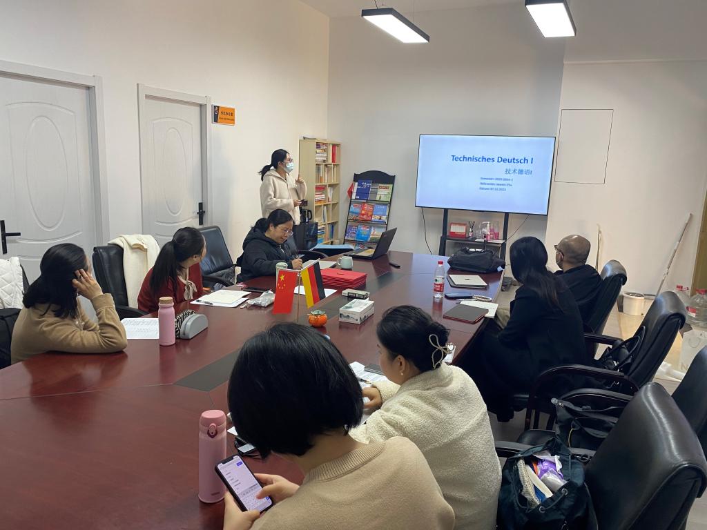 参加院级比赛的教师先后展示了自己的参赛作品。孔文静老师的《初级德语1》展示了新技术的应用,例如德语学习APP,自动生成词汇练习的Quizlet等。杨植钧老师介绍了通过Edupad平台和学生同步进行的文本编辑的方法。孙昊晨老师运用线上资源进行线上线下混合式教学,使用词汇云进行课后练习。陈巧老师的《综合德语1》课程设计巧妙,运用产出导向法理论全面育人。其余老师的比赛作品也各具特色,为创新德语教学提供了不少好点子。