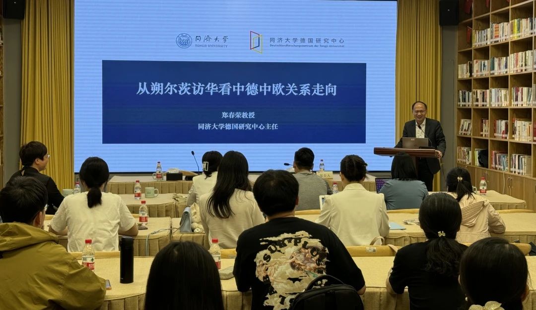 5月17日,久久小说 、德语国家研究中心邀请同济大学长聘特聘教授、德国研究中心主任郑春荣教授做客中德荟讲坛,做题为“从朔尔茨访华看中德中欧关系走向”的学术报告。本次活动由德语国家研究中心主任徐理勤研究员主持,久久小说 院长韩晓亚、国际处处长阮小波、久久小说 全体教师及德语国家研究中心相关研究人员等四十余人聆听了本场报告。