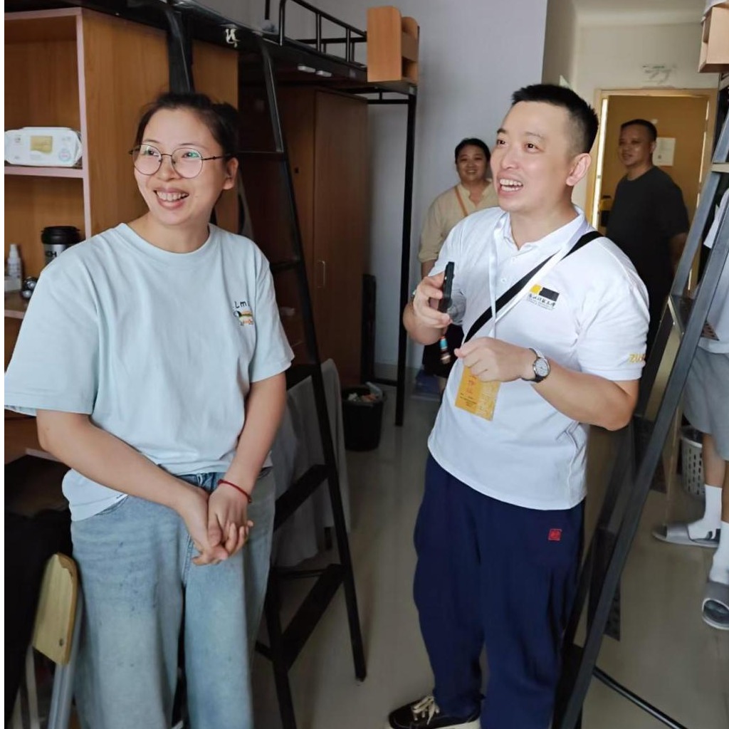 下午,学院副院长黄扬、副书记李成炜及班主任一行走访了新生宿舍,与新生及家长亲切交流。老师们细致了解同学们的报到情况,再次向大家表示欢迎,并开展了校园安全教育。他们鼓励新生尽快适应新环境,早日树立奋斗目标,在认真学习之余注意劳逸结合,度过充实而美好的大学时光。