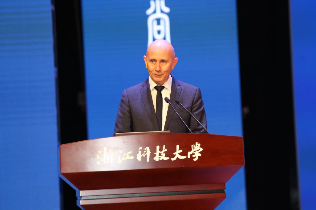 克里斯蒂安·萨卡雷亚在致辞中向浙江科技大学取得的成就表示祝贺,指出巴比什-博雅依大学作为浙江科技大学的长期合作伙伴,双方在创新思维、多语言教育和国际合作方面持有共同的开放理念。近日双方新签署的合作协议将推动科研与教学深度融合,并构筑起两校进一步合作的桥梁。
