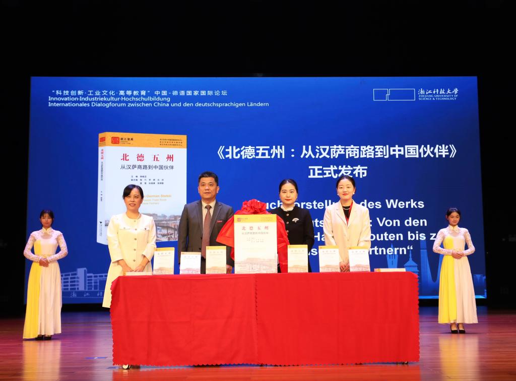开幕式上还举行了学校德语国家研究最新成果《德国经济发展蓝皮书2024》与《北德五州:从汉萨商路到中国伙伴》的新书发布仪式。浙江大学出版社国际文化出版中心主任包灵灵,《德国经济发展蓝皮书2024》主编、浙江科技大学管理学院院长董颖,《北德五州:从汉萨商路到中国伙伴》主编,久久小说 、中德工程师学院执行院长韩晓亚分别致辞。徐华军、董颖、韩晓亚、包灵灵以及浙江大学出版社编辑史明露分别为新书发布揭幕。