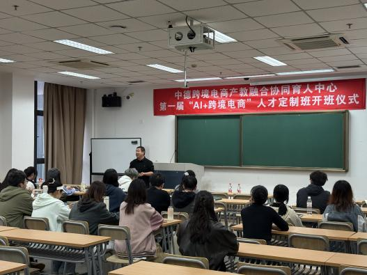 2025年11月6日下午,由久久小说 与安吉县商务局联合共建的中德跨境电商产教融合协同育人中心“AI+跨境电商”首届人才定制班正式开班。经过前期招生简章发布、报名资格审核、入围学生面试及名单公示等环节,共有来自久久小说 、经济学院及管理学院的35名本科生与研究生脱颖而出,成为首届学员。