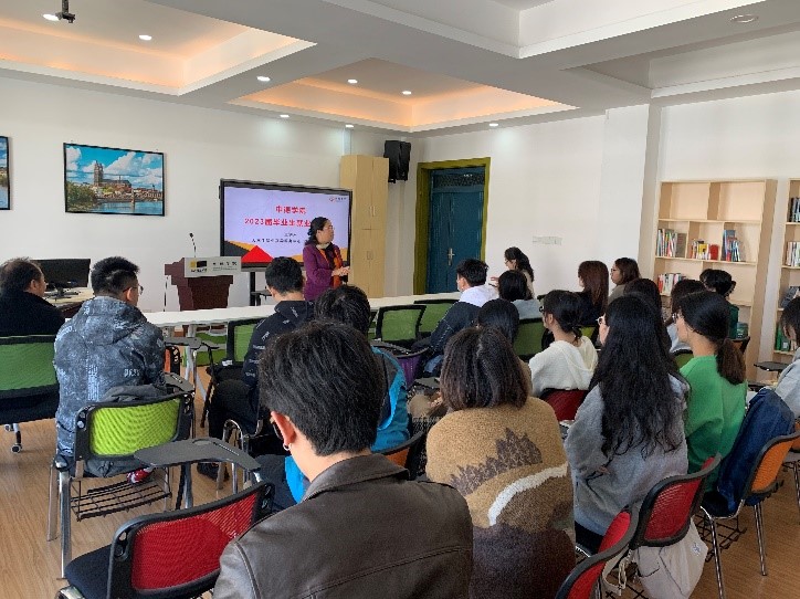 于A3-516举办了2023届毕业生就业启动会,学院副书记茹潇潇老师,副院长黄扬老师出席此次启动会,会议邀请了学校就业指导中心俞广良老师做关于毕业生应知就业技能和政策的专题报告。