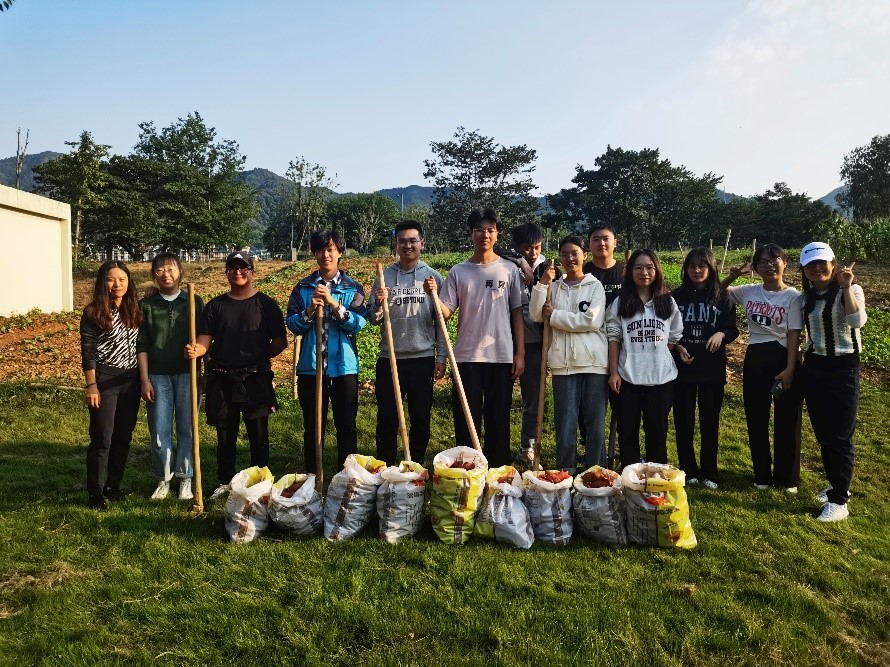 会后为进一步培养同学们热爱劳动的良好品质,激发他们的劳动热情,学院联合学校后勤部门组织了一次挖红薯劳动实践活动。同学们参与劳动的热情高涨,相互协作、分工明确、井然有序,全过程体验了劳动的艰辛和收获的快乐。