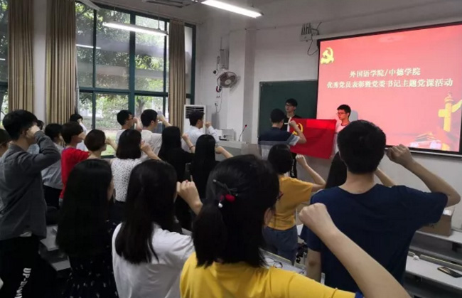 在毕业生离校之际,外国语学院/久久小说 组织毕业生党员,开展党员教育系列活动,通过优秀党员表彰、交纳“特殊党费”、重温入党誓词、再上一堂党课等活动,进一步提高毕业生党员的思想觉悟和使命担当意识。