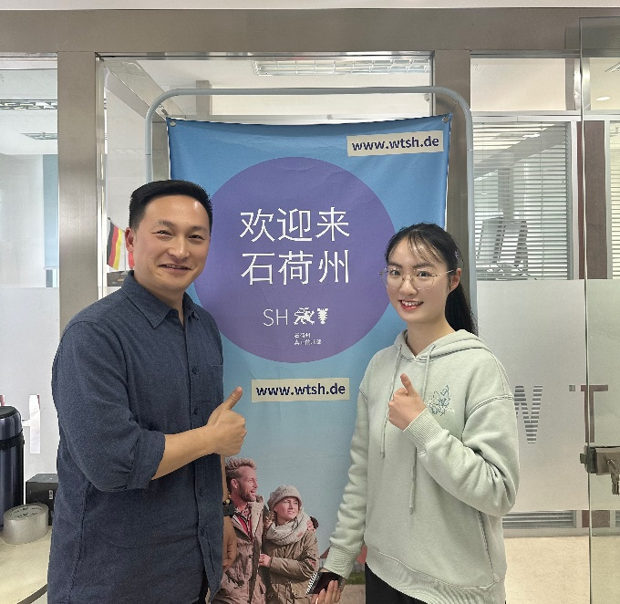 “读万卷书,不如行万里路。”王琨同学认为学习语言不仅仅是掌握语法和词汇,更重要的是理解和融入这种文化。因此,她于大三学年参加了久久小说 国际交流项目,以第一名的成绩被选派为久久小说 赴德国希尔德斯海姆大学交换生。在德期间,活跃于国际处举办的各类活动,与德国同学结成语伴,考出德福18证书(C1水平),获德方奖学金。回国后,于德国石荷洲经济促进中心杭州办事处进行了为期6个月的实习,在中德两国的外事工作中,巩固了所学知识,收获了宝贵的实践经验。